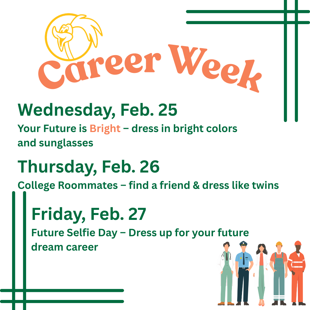 Celebrate career week with spirit days! Wednesday, Feb. 25: Your Future is Bright – dress…