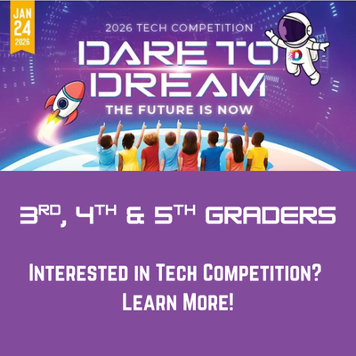 Pre-register Third, Fourth and Fifth grade students interested in creating a technology project and presenting this project at the Tech Competition on January 24, 2026, at McNair Middle School located at 2190 Wallingford Drive, Decatur, GA. This registration provides important information so that your sponsor may officially register your project by Nov. 14th. Therefore your project does not have to be finished in order to register.