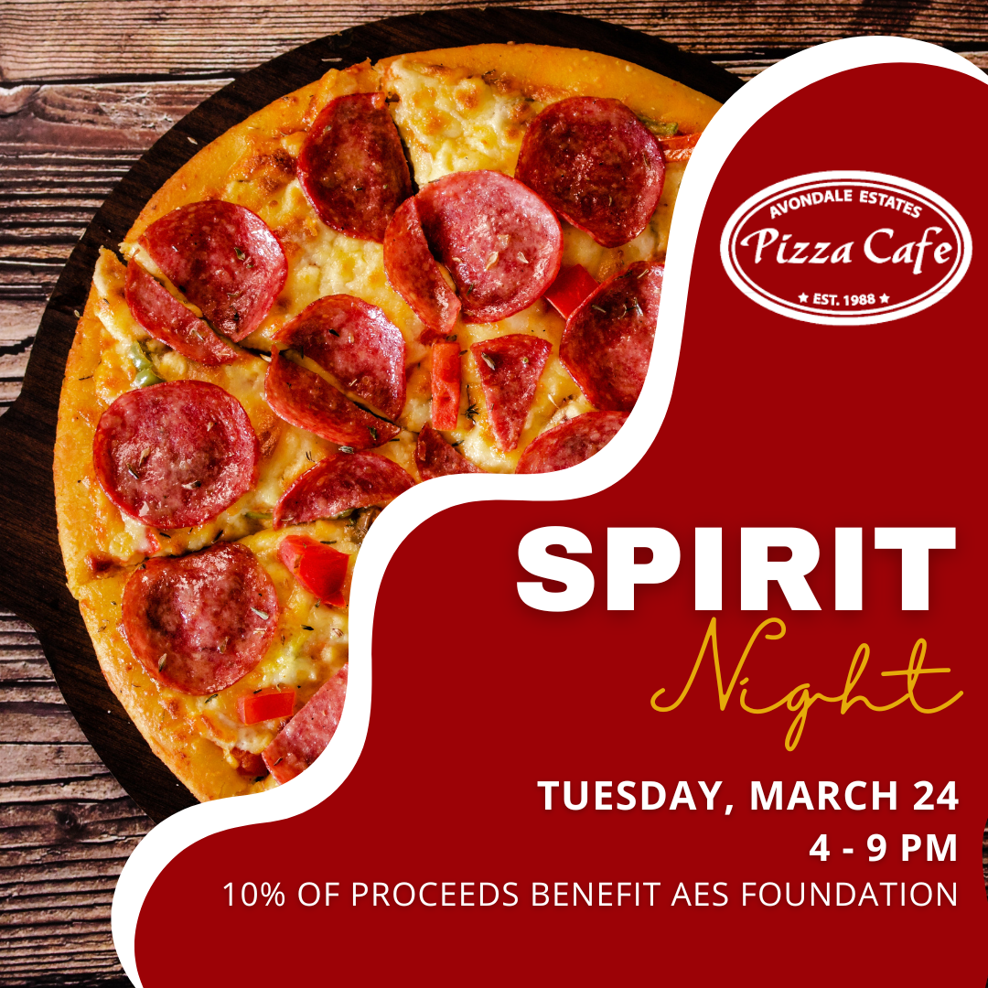 Join AES friends for Spirit Night at Avondale Pizza Cafe in Decatur. 10% of sales benefit the AES Foundation. Please mention “AES” in your order to make sure the proceeds go toward the school.